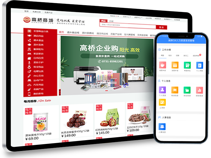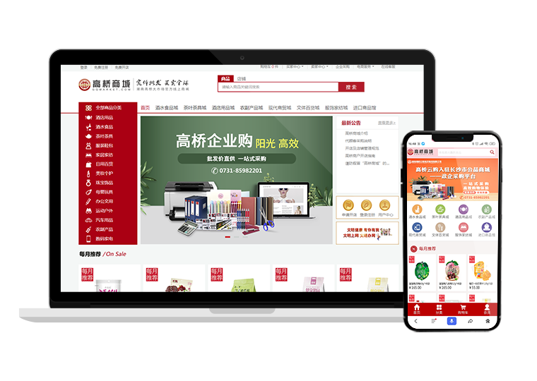 高橋商城致力于推動專業市場的互聯網化和數據化,服務線下實體店鋪,是對湖南高橋大市場的商戶和品牌資源進行信息發布、產品展示、品牌推廣的線上平臺;依托高橋大市場豐富的