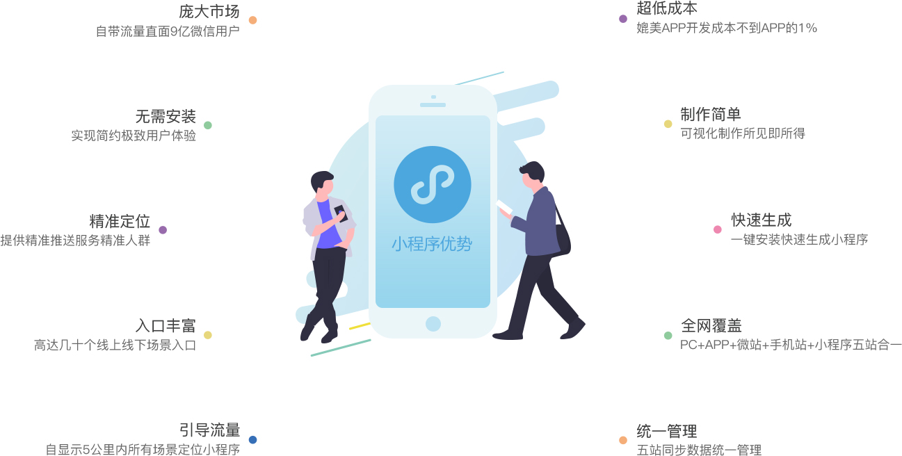 “小程序+”時代已經到來。開發成本低、推廣成本低的小程序對于創業者而言是絕佳的流量入口。利用小程序在微信生態中低成本高效率的獲客特點與自身行業相結合起來,各種行業的小程序都有廣闊的發展前景。