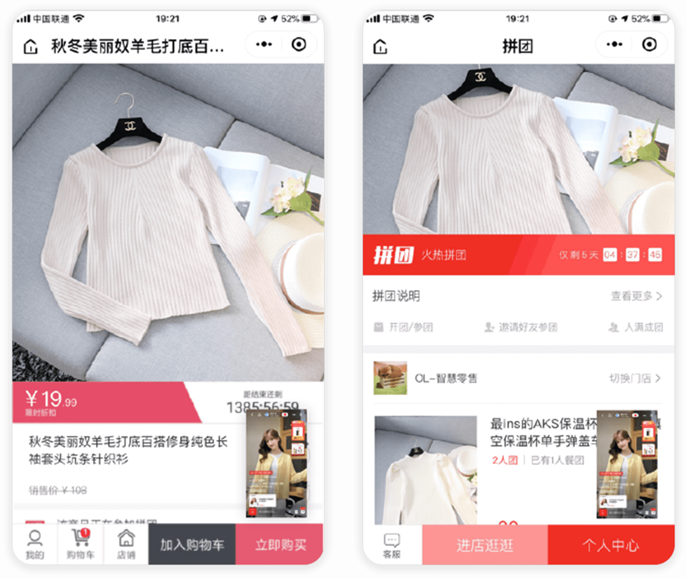 發券、拼團、禮盒,多樣玩法, 顧客一鍵轉發、裂變百萬流量