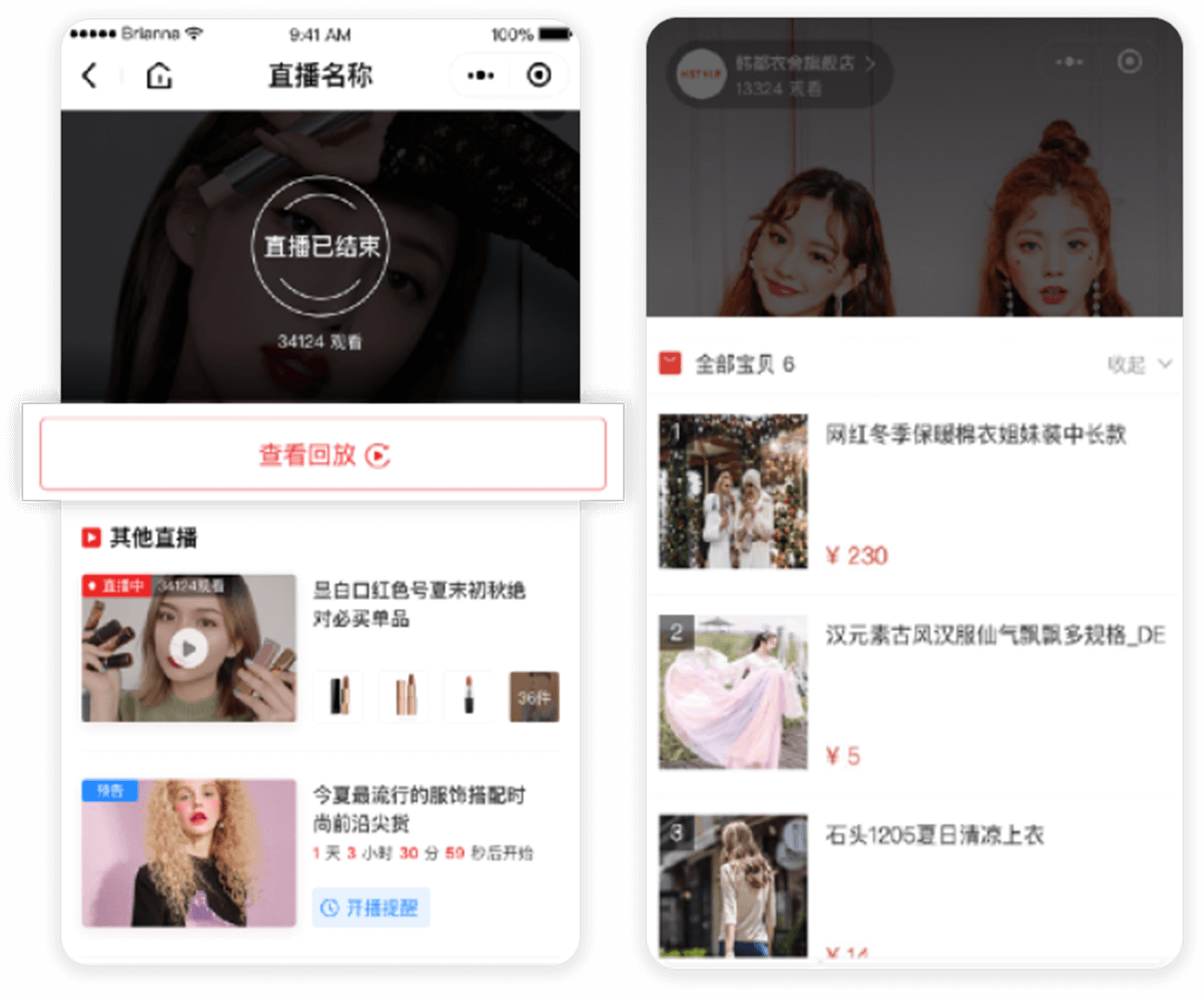 用戶可觀看回放視頻,購買商品,一場直播打造長期收益