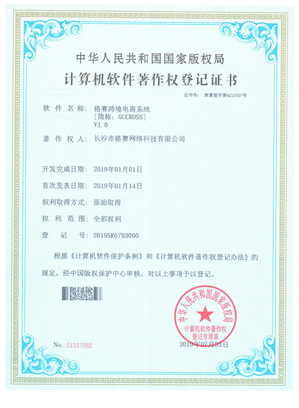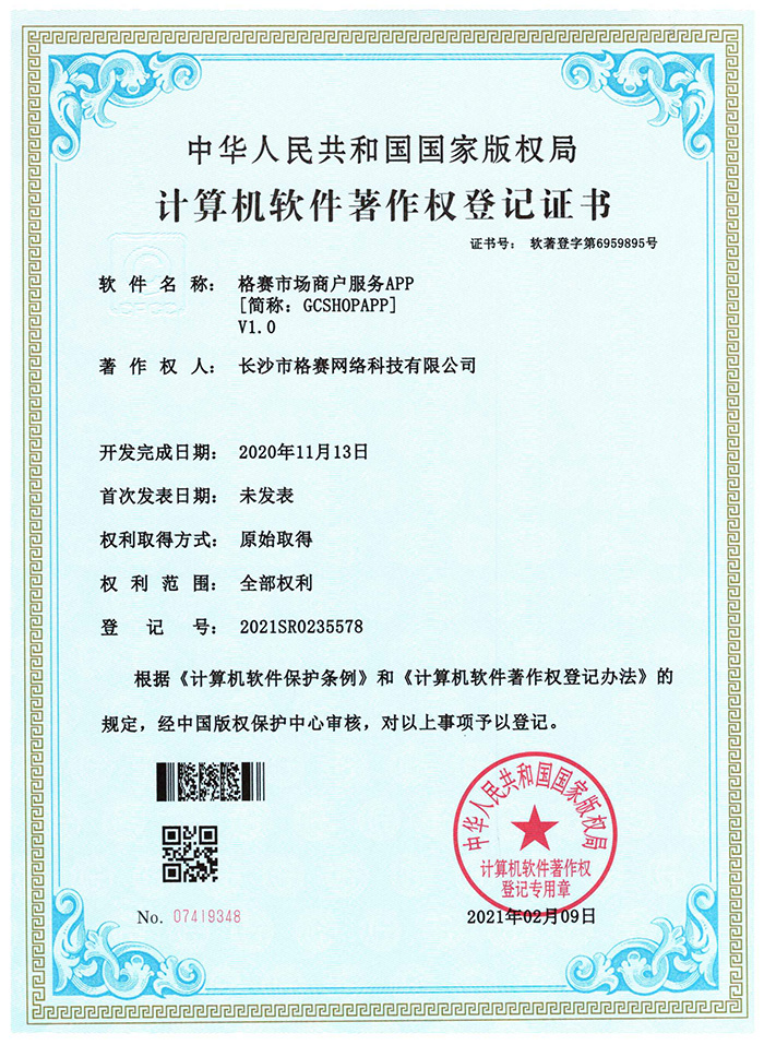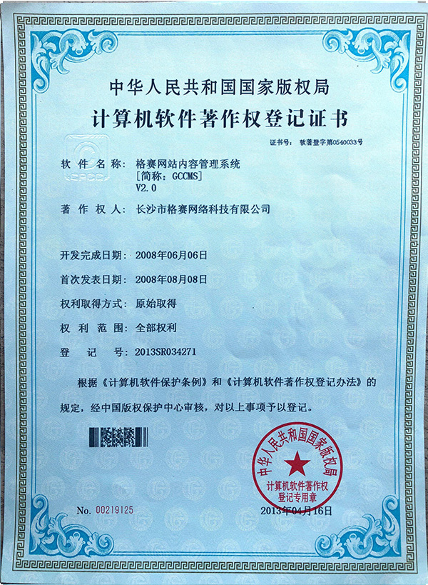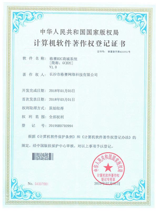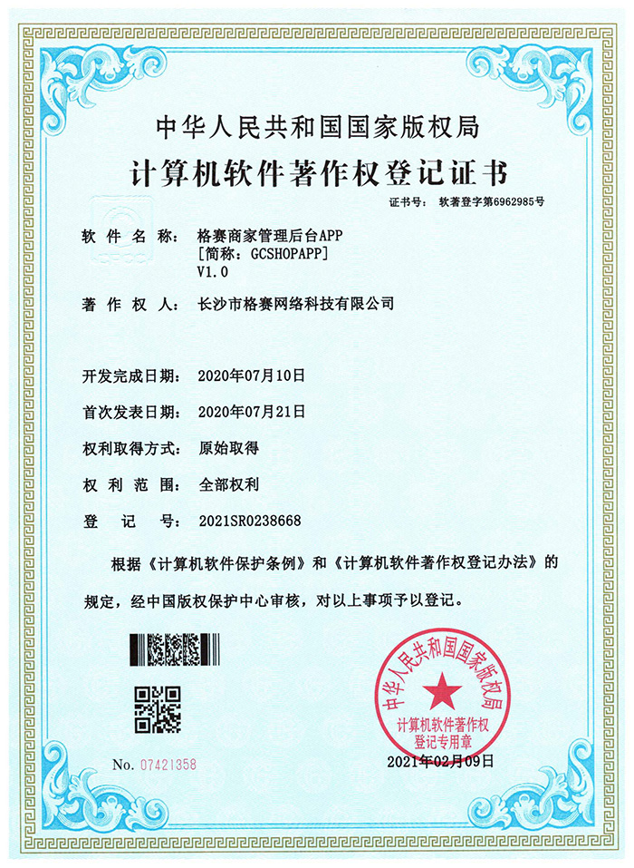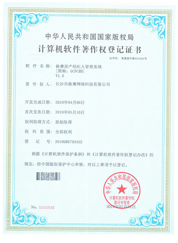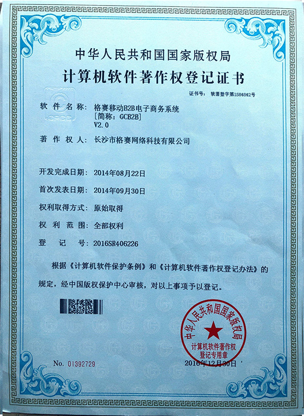 計算機軟件著作權(quán)登記證書