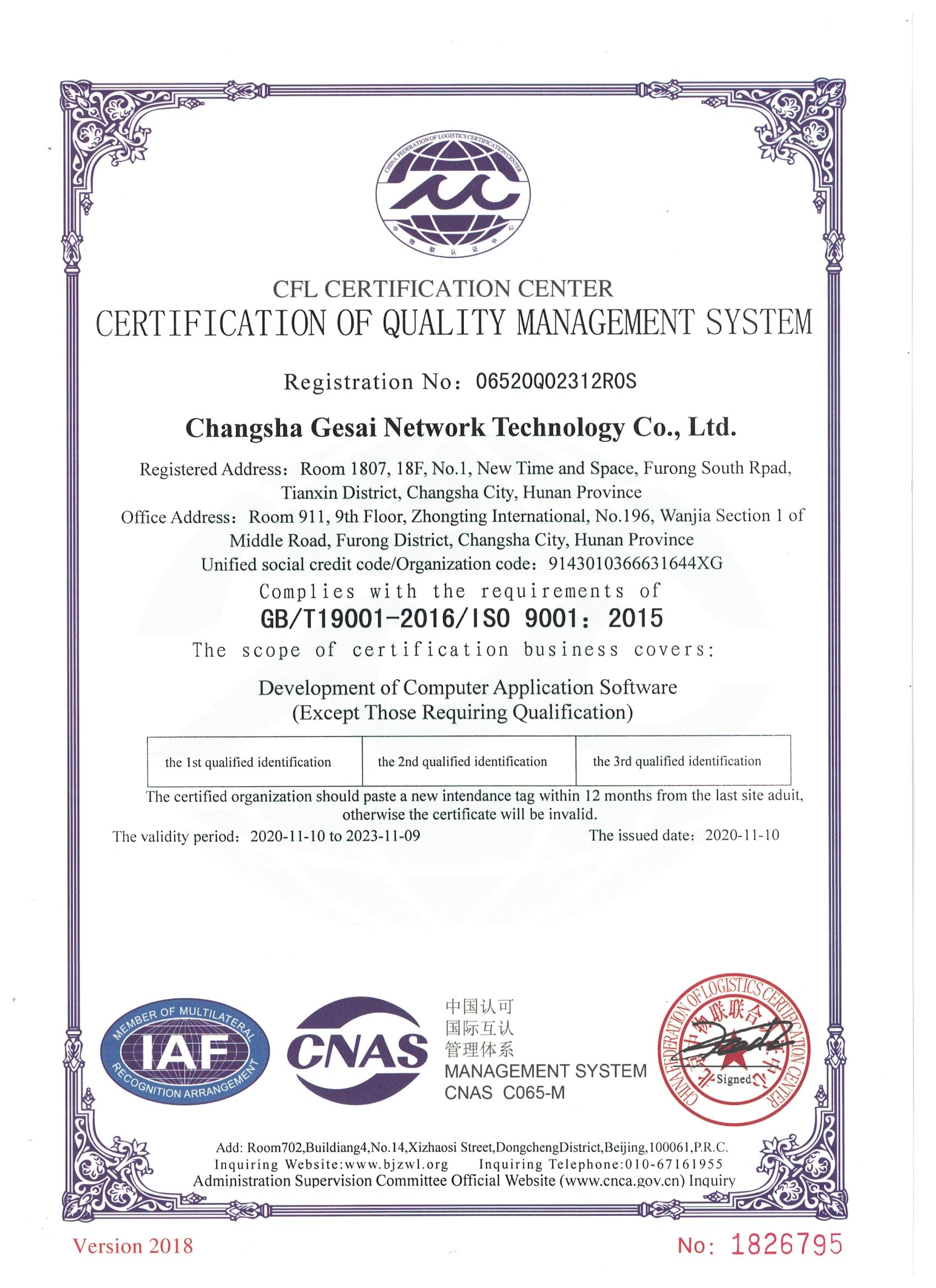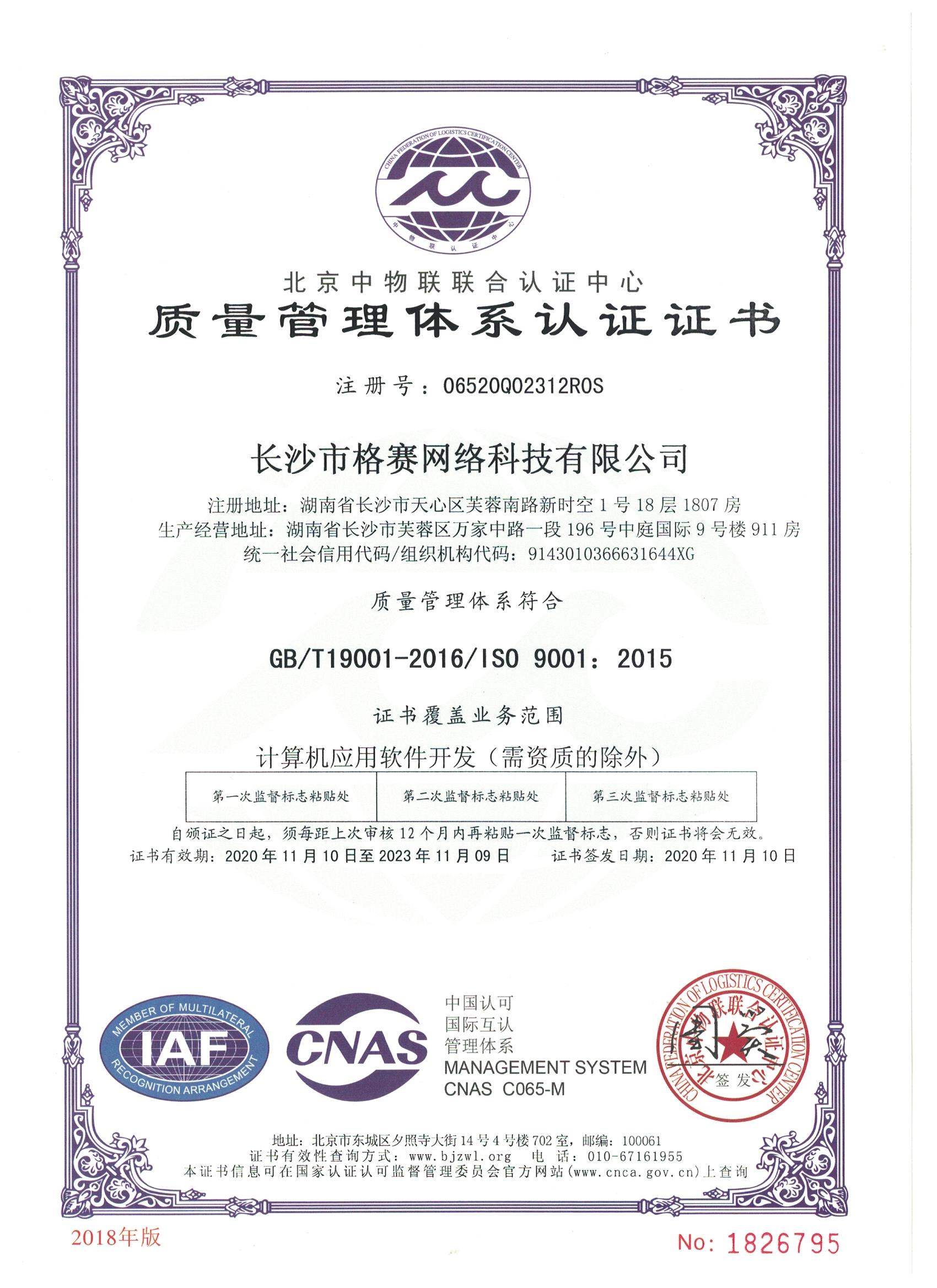 質(zhì)量管理體系認證證書