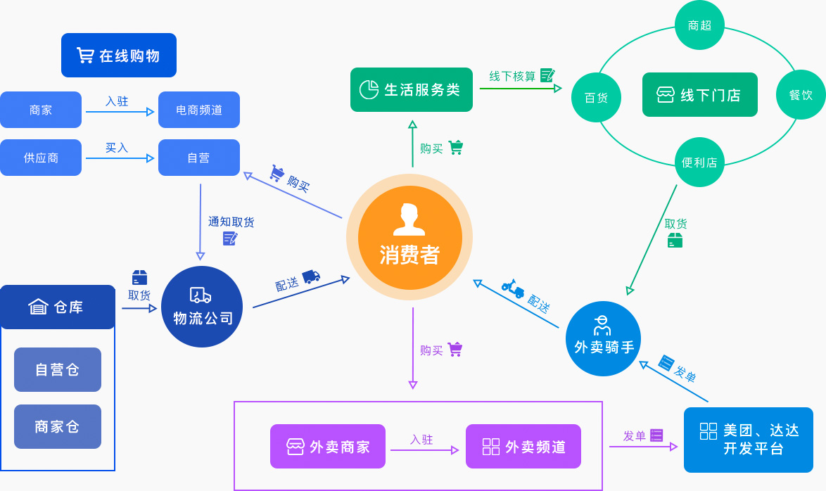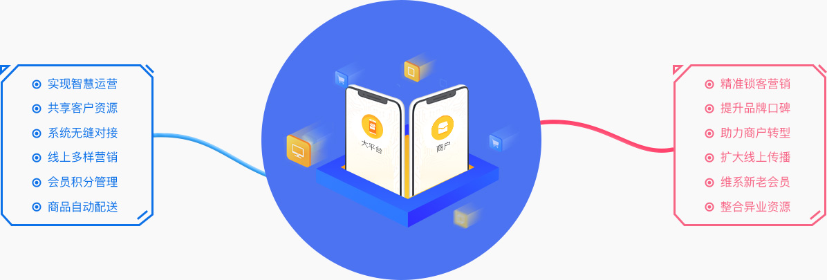 將綜合體內吃、喝、玩、樂、購實體門店與互聯網結合,開發線上BBC商城,逐步整合線下會員體系、積分體系、對接自營ERP系統,形成集信息、推廣、銷售、展示于一體的綜合服務平臺,從而打造新型的電商服務O2O生態圈。